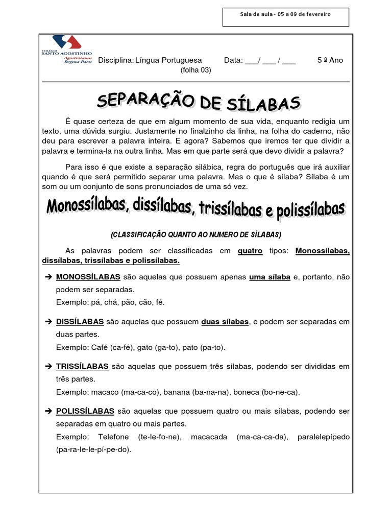 Informações sobre Exemplos De Palavras Monossilabas Dissilabas Trissilabas E Polissilabas.
