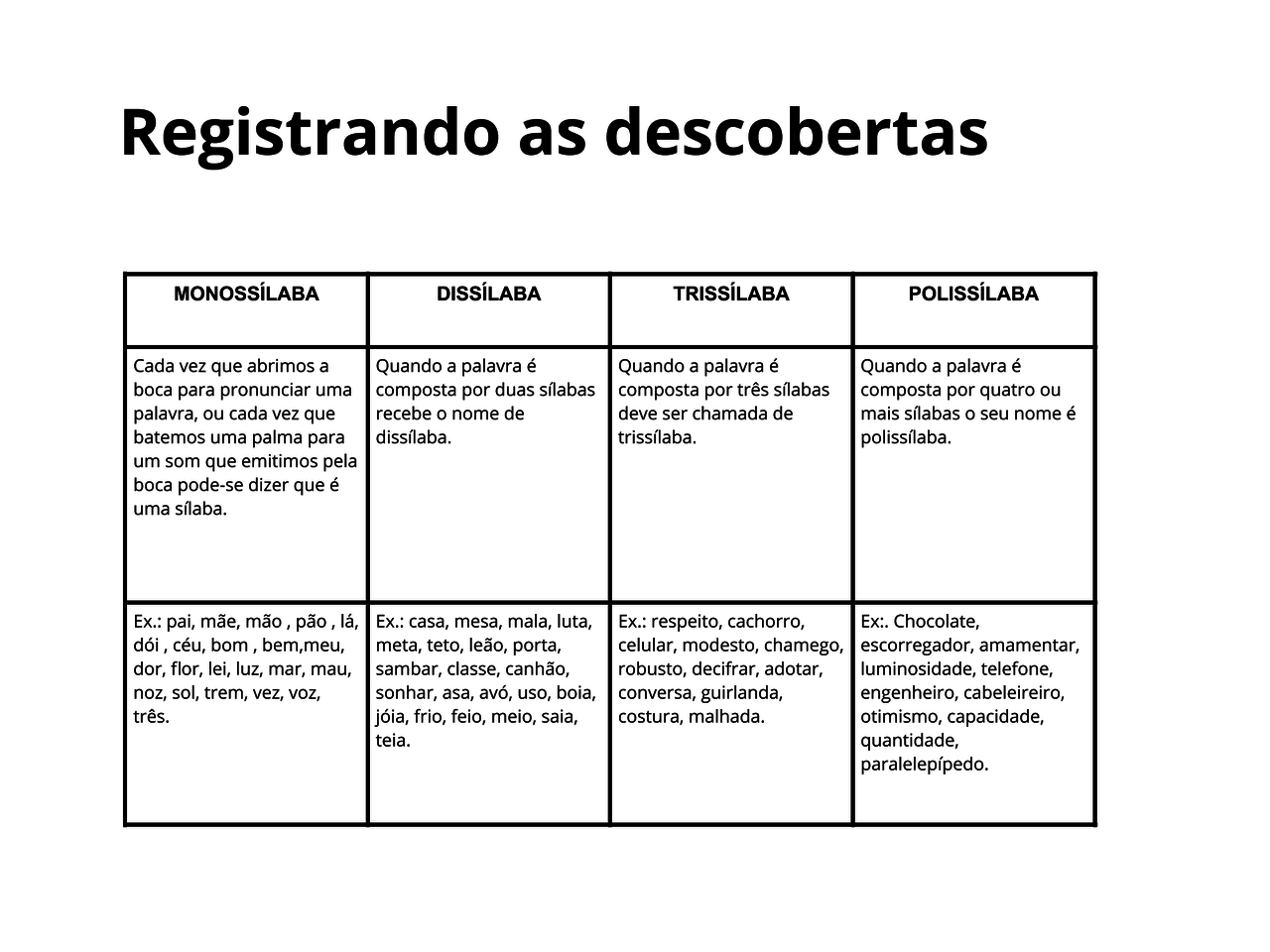 Exemplos de palavras monossilabas dissilabas trissilabas e polissilabas.