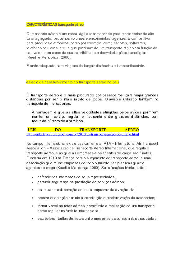 Doc Caracteristicas Transporte Aereo Italo Gomes Academia Edu