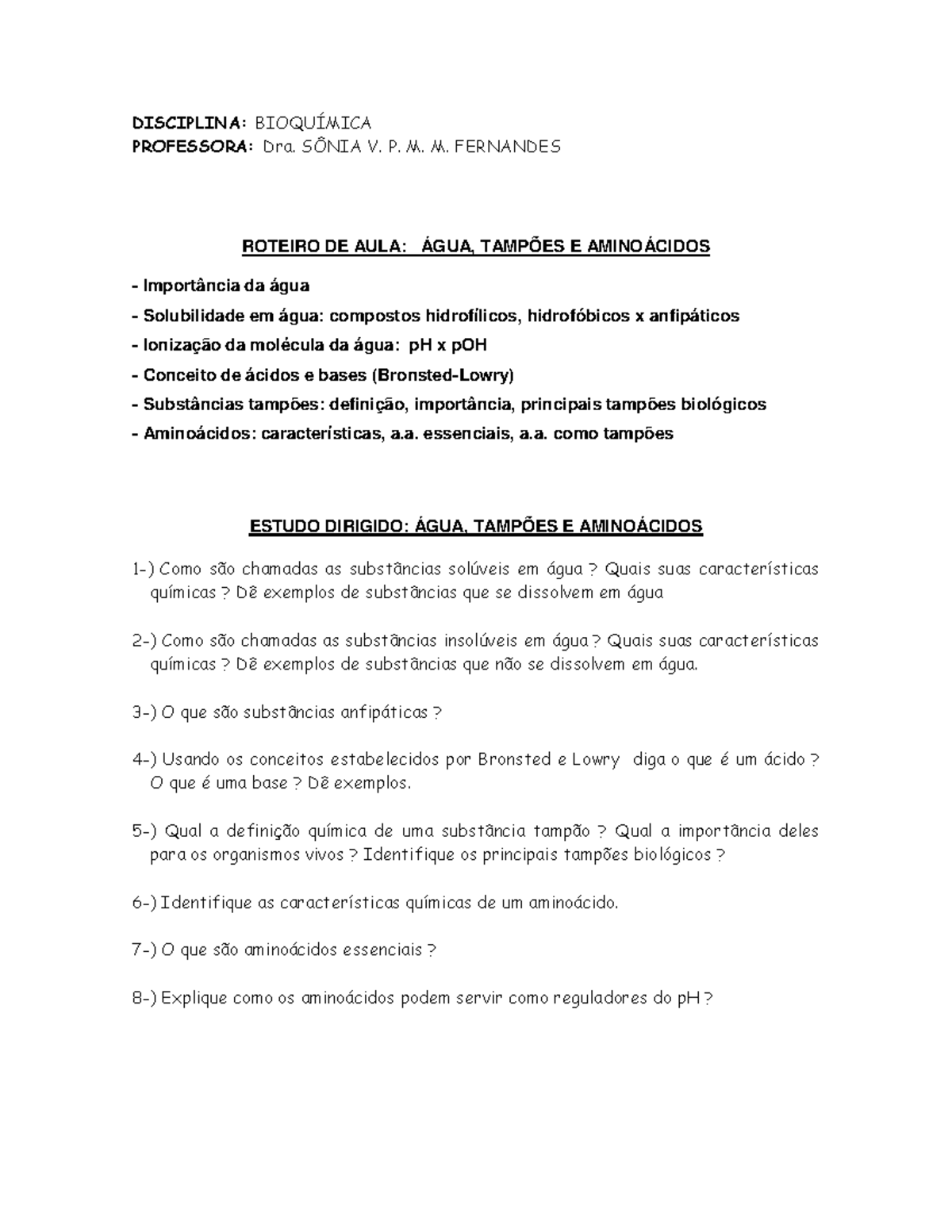 Topagua Aa Exercicio Agua E Tampoes Bioquimica I Studocu