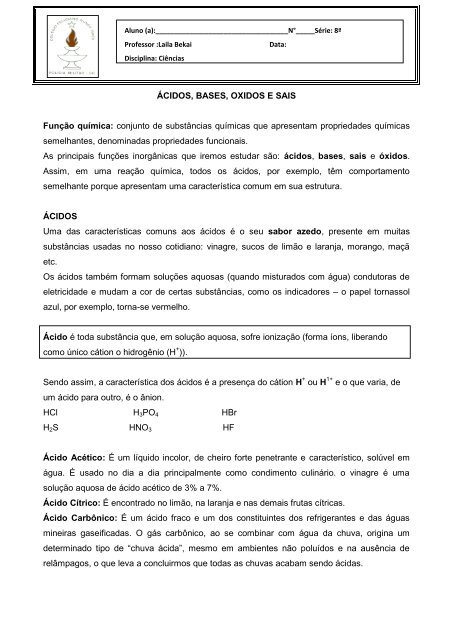 Coleção de administradores sobre ácidos Bases Sais E óxidos Exemplos.