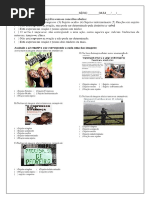 Atividade 7 Ano Sujeito Aposto Vocativo Docx Assunto Gramatica