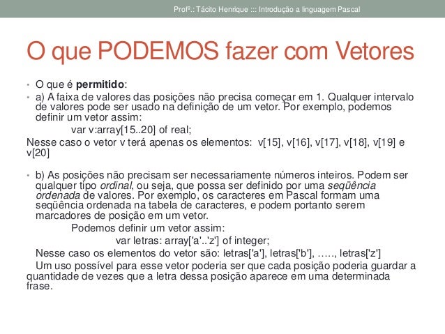 Aqui estão os detalhes Como Podemos Definir Um Vetor De Um Exemplo.