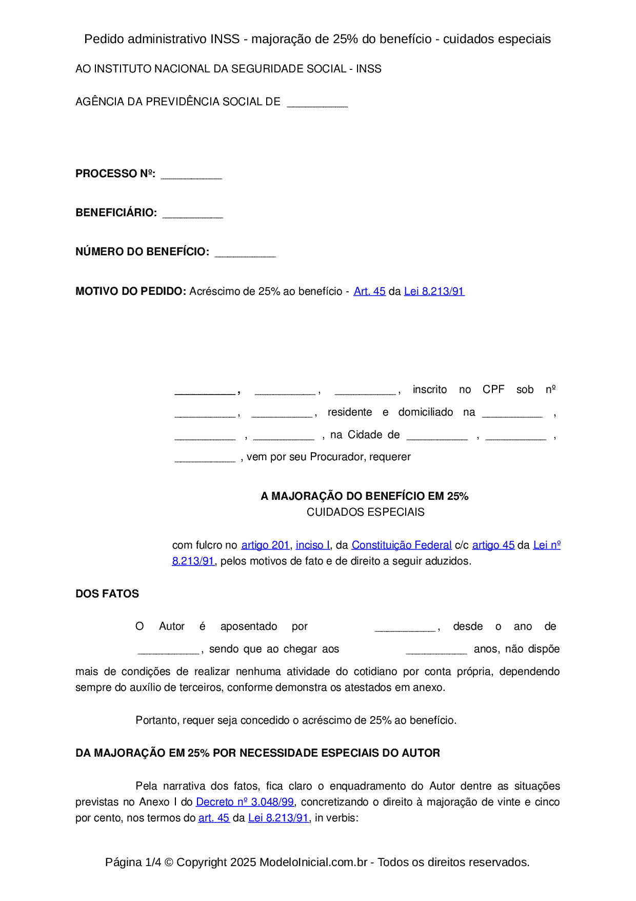 Modelo Pedido Administrativo Inss Majoracao De 25 Do Beneficio
