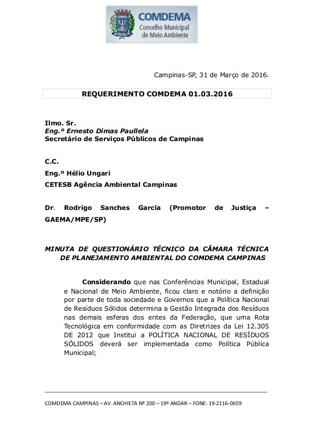 Oficio Requerimento Comdema 12 04 2016 Da Presidencia Do Comdema Co