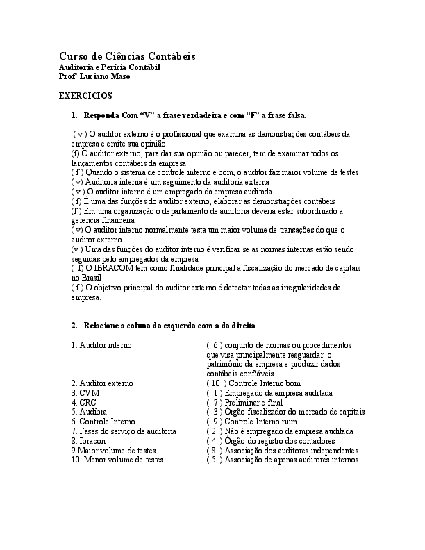 Auditoria Procedimentos E Questoes Auditoria Contabil Docsity