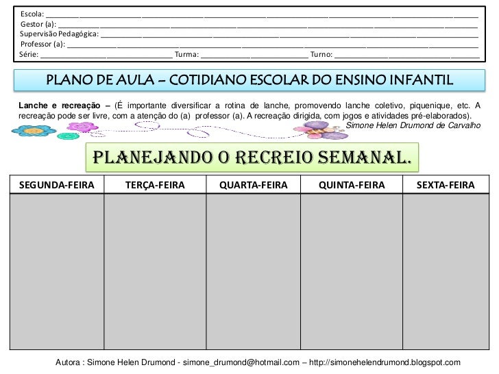 Plano De Aula Semanal Pdf Free Download