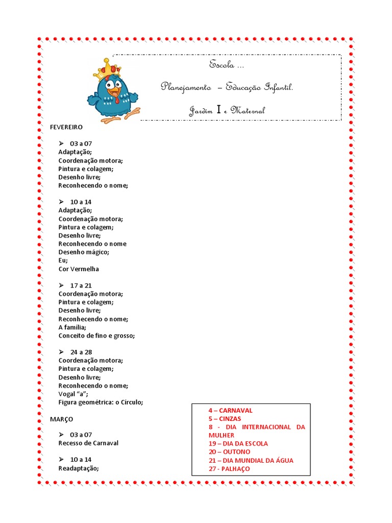 Apresentamos informações relevantes Exemplo De Plano De Aula Semanal Educação Infantil.