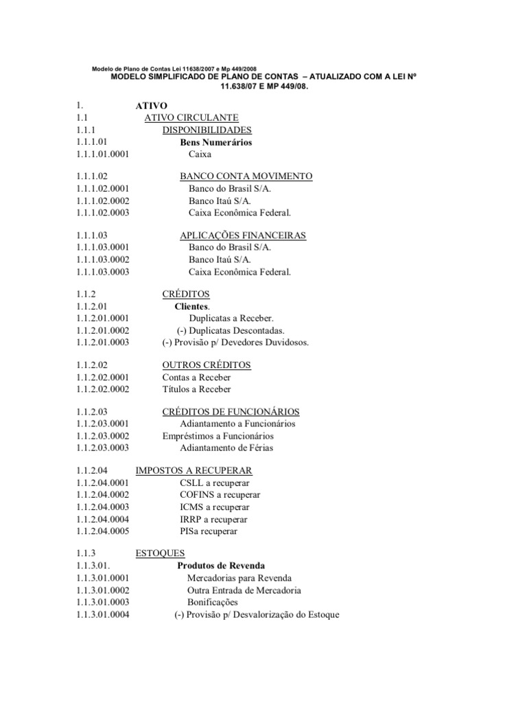 Modelo De Plano De Contas Lei 11638 2011