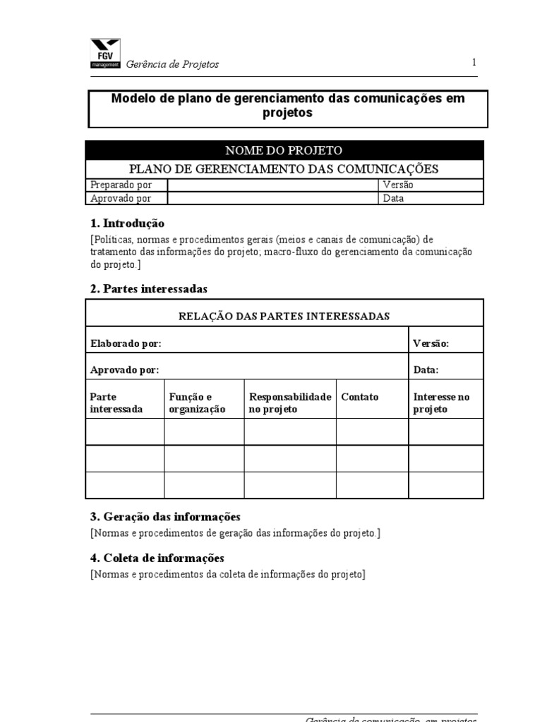 Modelo De Plano De Gerenciamento Das Comunicacoes Em Projetos