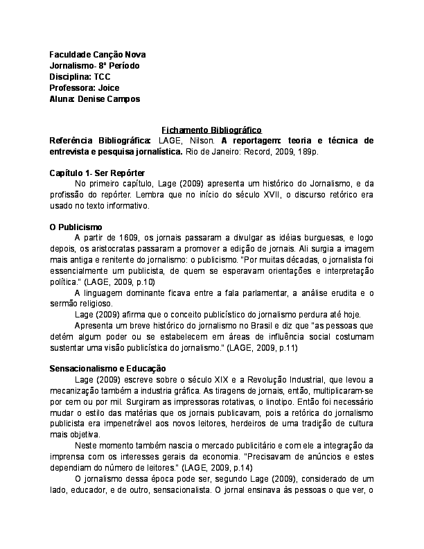 Doc Fichamento A Reportagem Denise Claro Academia Edu