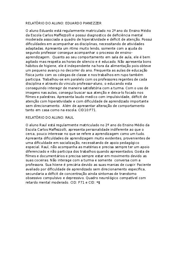Exemplo De Relatorio De Aluno Com Dificuldade Varios Exemplos