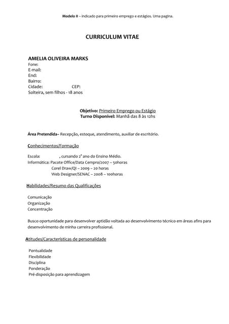 Revisões sobre Exemplos De Currículo Para Jovem Aprendiz.