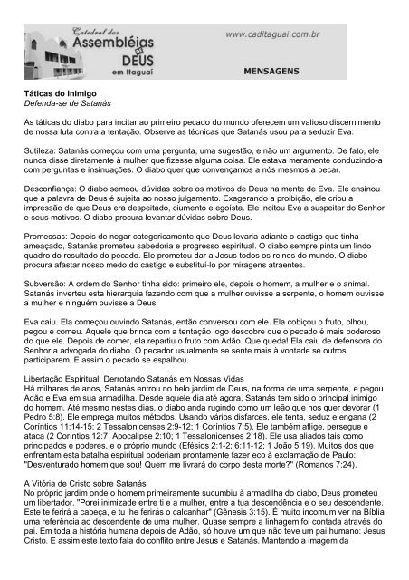 Taticas Do Inimigo Defenda Se De Satanas As Taticas Do Diabo Para
