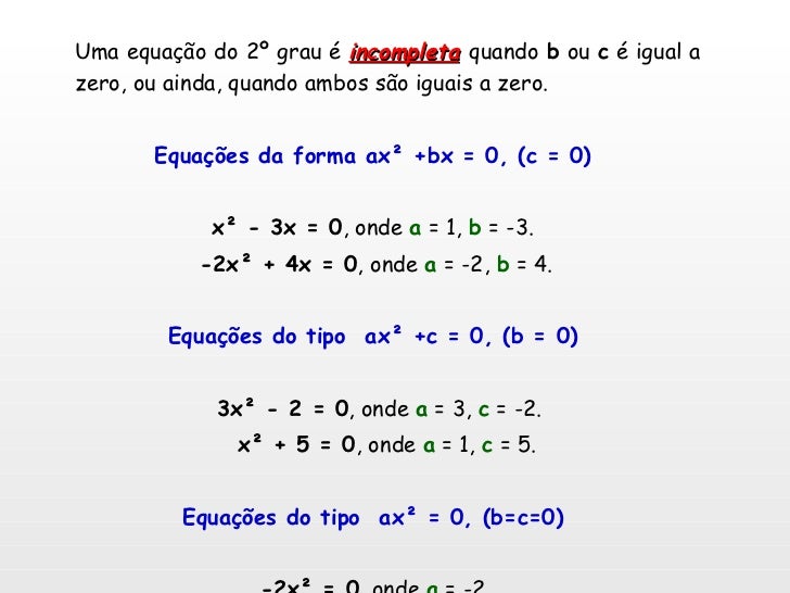 Equacao Incompleta 2 Grau Equacao Incompleta 2 Grau Docsity