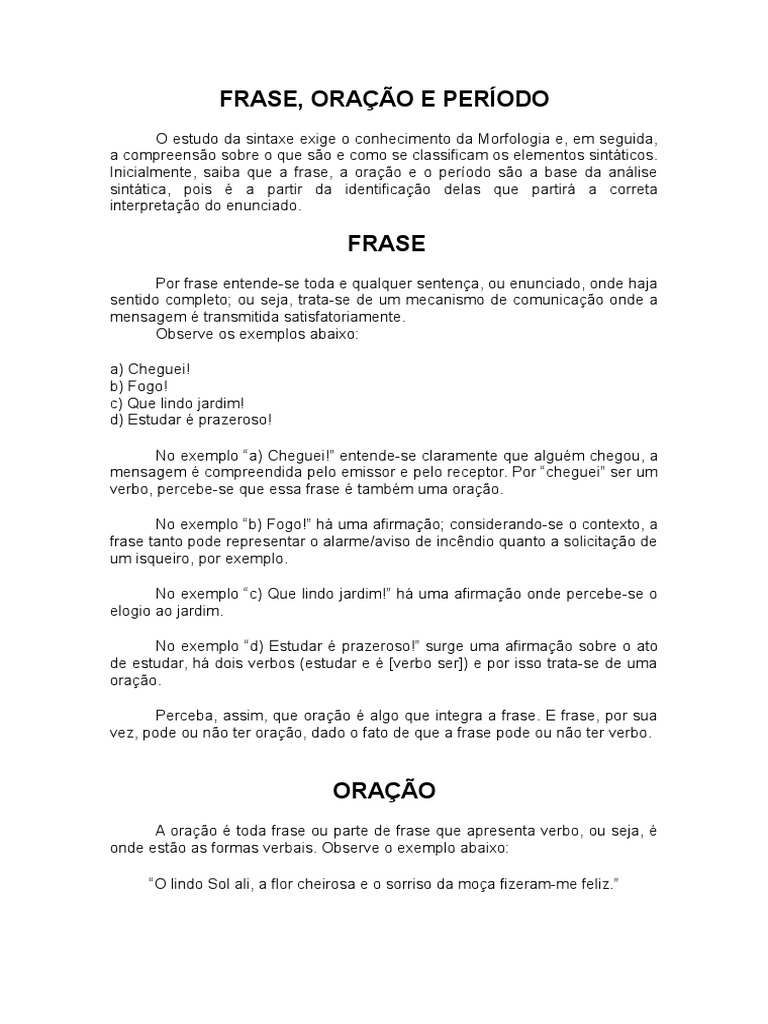 Frase Oracao E Periodo Assunto Gramatica Mecanica Da Linguagem