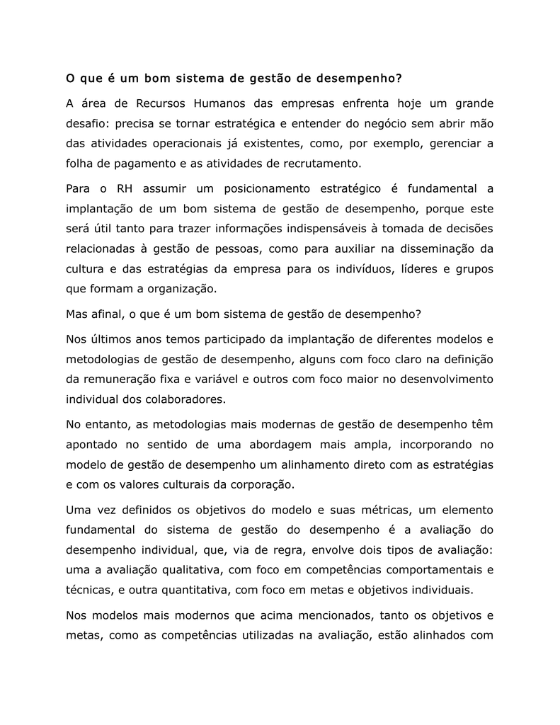 O Que E Um Bom Sistema De Gestao De Desempenho