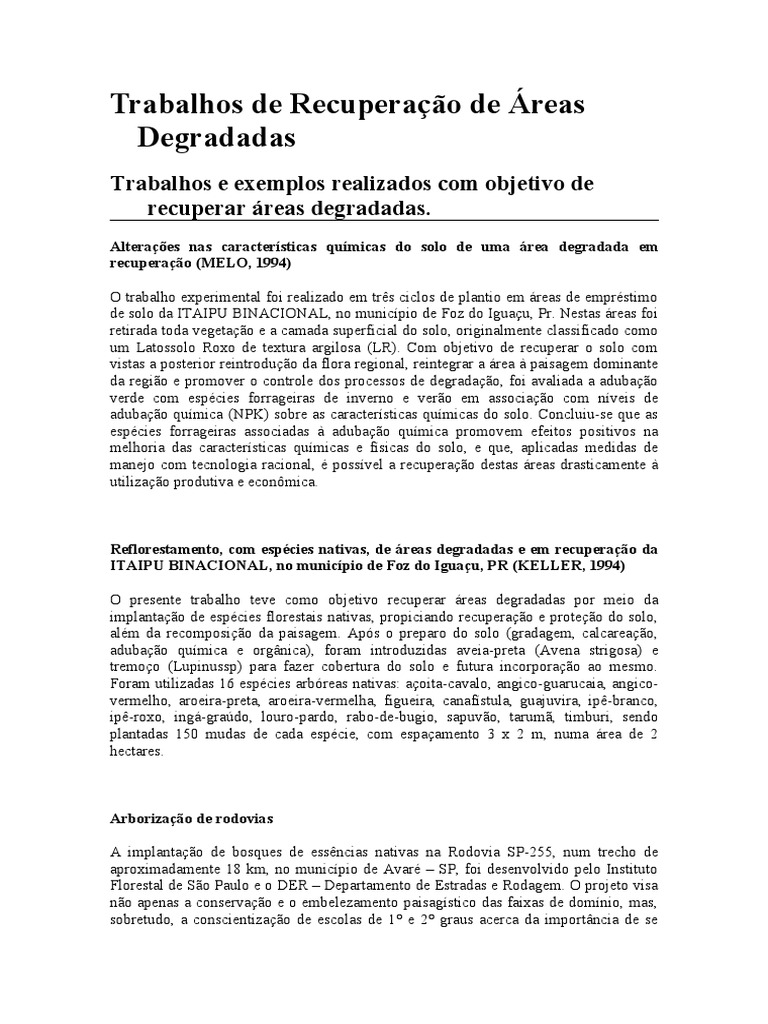 Encontre informações completas sobre  Exemplos De Recuperação De áreas Degradadas.