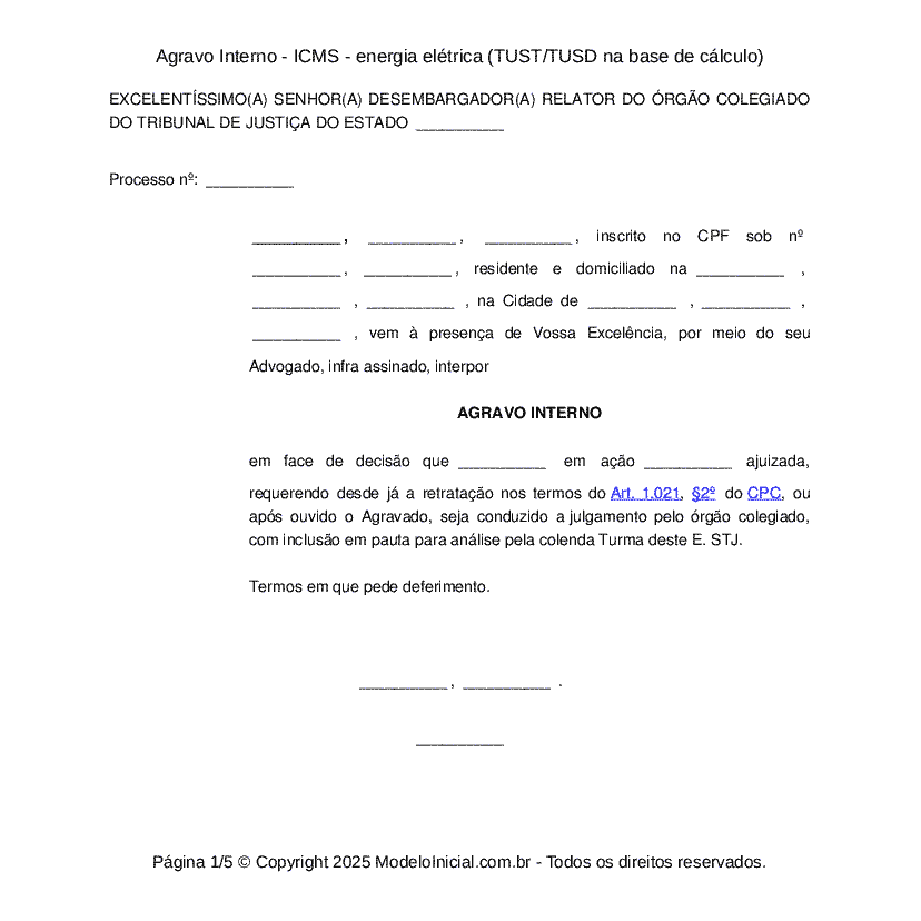 Modelo Agravo Interno Icms Energia Eletrica Tust Tusd Na Base