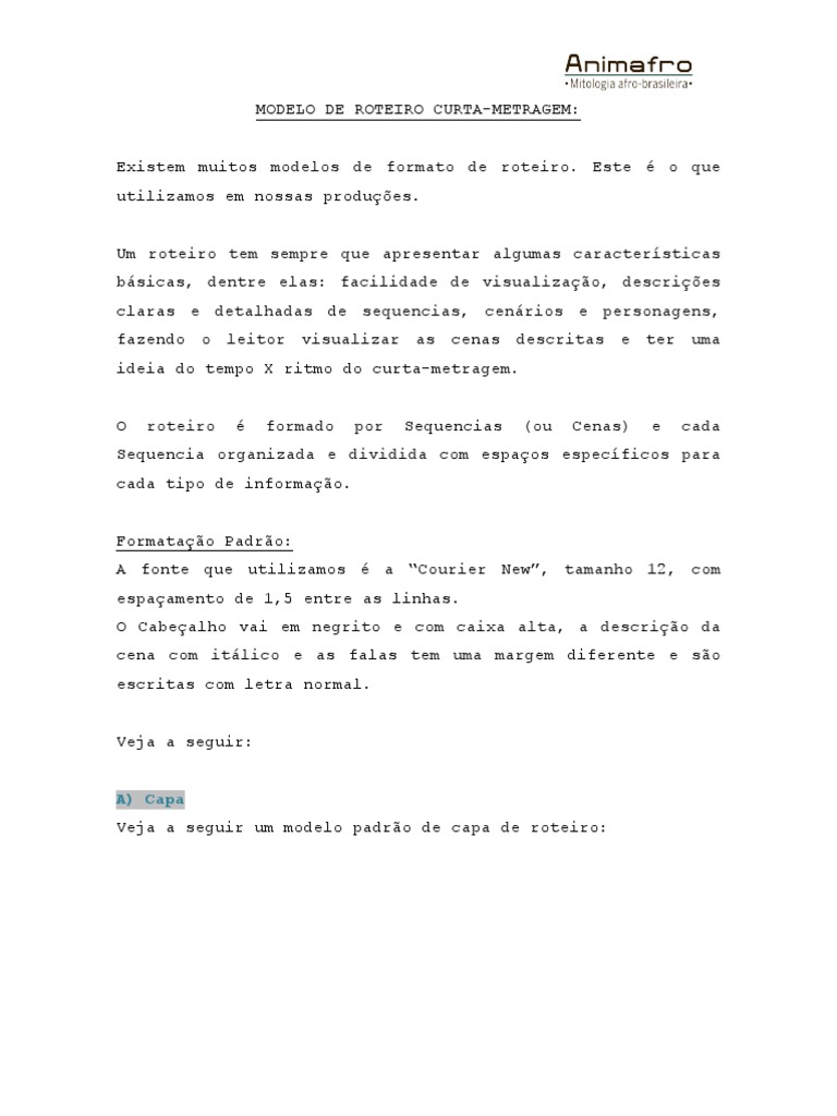 Animafro Modelo De Roteiro De Animacao Curta Metragem Pdf