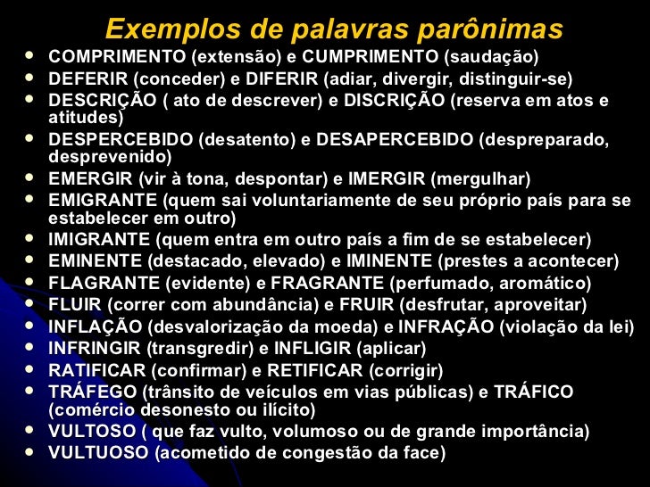 Palavras Paronimas Exemplos E Seus Significados