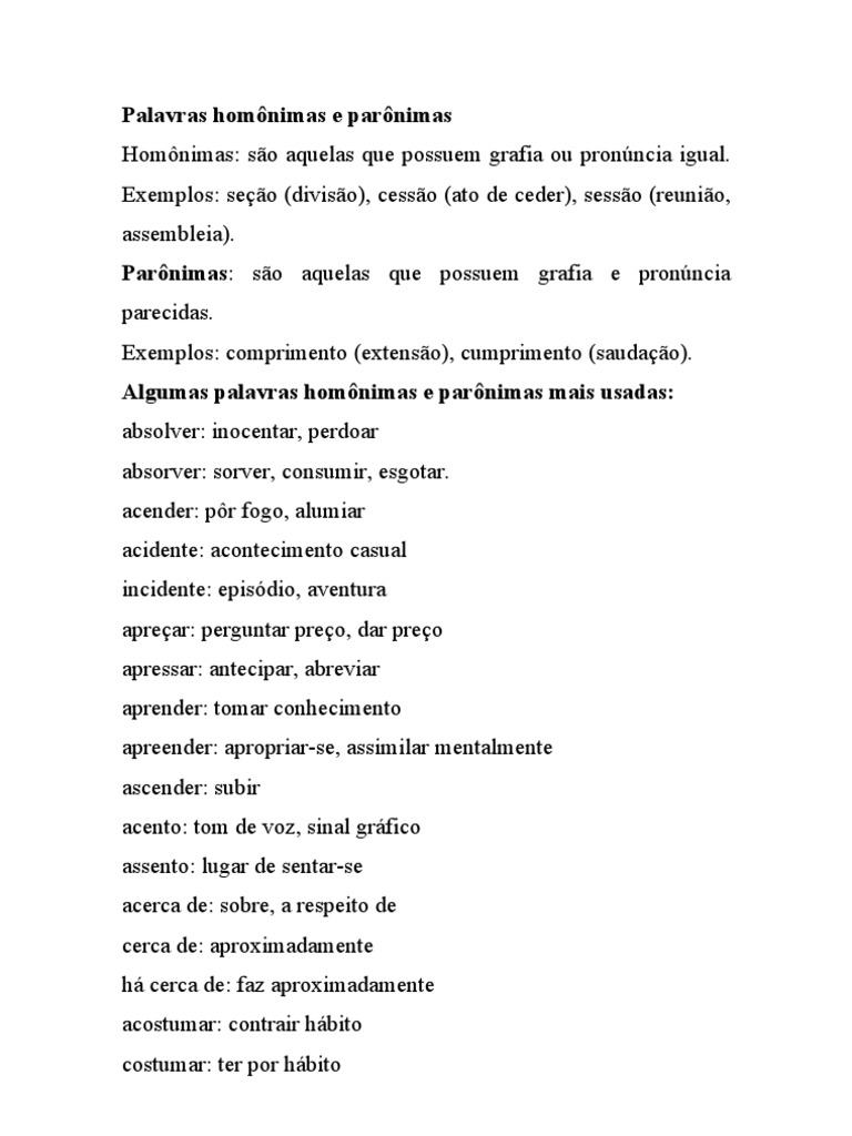 Encontre informações completas sobre O Que São Palavras Parônimas Exemplos.