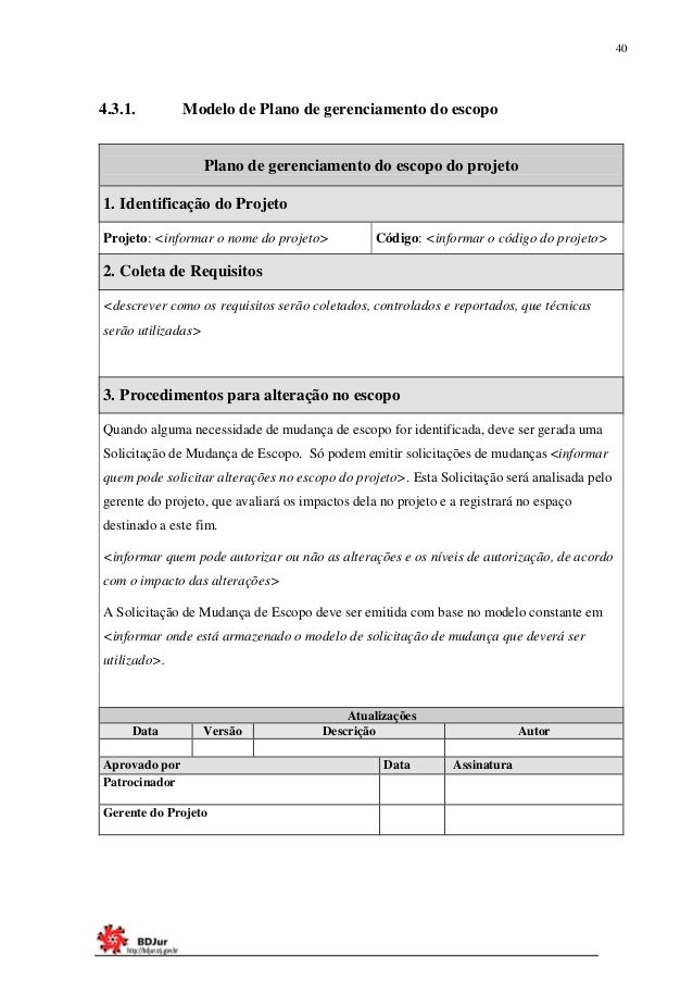 Plano De Gerenciamento Do Escopo Exemplo Gestao De Projetos