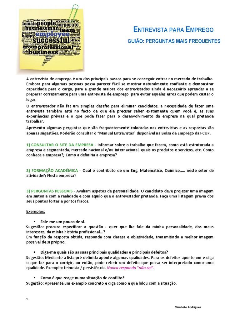 Breve Guiao Perguntas Entrevista Entrevista Emprego