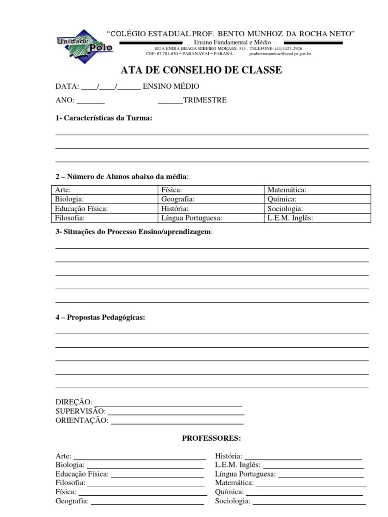 Informações completas sobre Exemplo De Ata De Conselho De Classe.