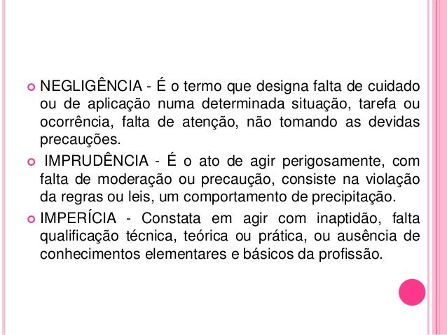Exemplos de imprudência negligência e imperícia agosto 05 2018.