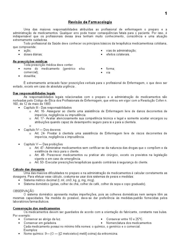 Revisao De Farmacologia 1 Enfermagem Emulsao