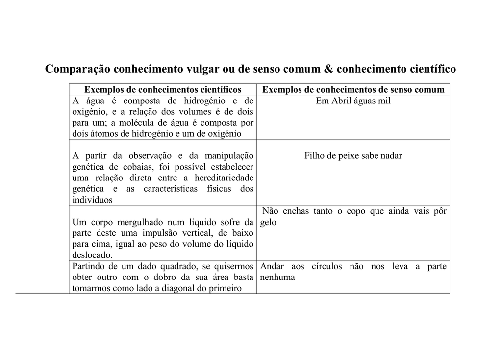 Comparacao Conhecimento Vulgar Ou De Senso Comum
