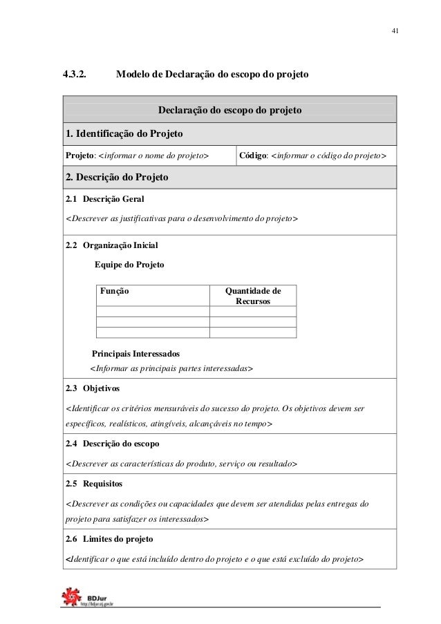 Modelo Declaracao De Escopo Do Projeto Projetos