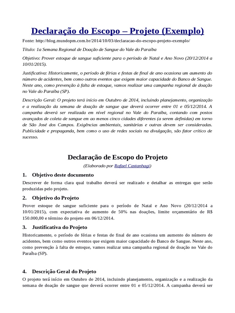 Encontre informações completas sobre Exemplo De Declaração De Escopo De Projeto.