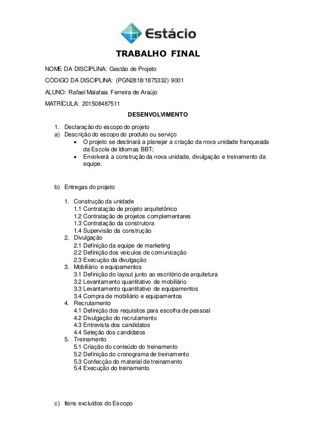 Exemplo De Escopo De Projeto Passo A Passo Completo Euax
