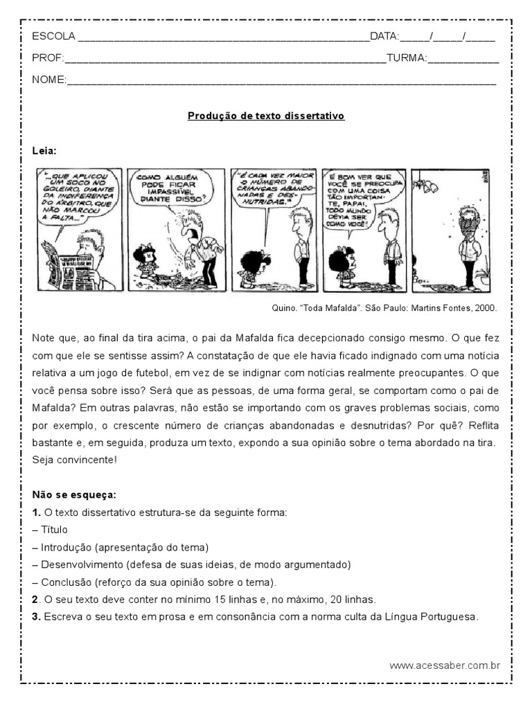 Atividade De Portugues Producao De Texto Dissertativo 3º Ano Do