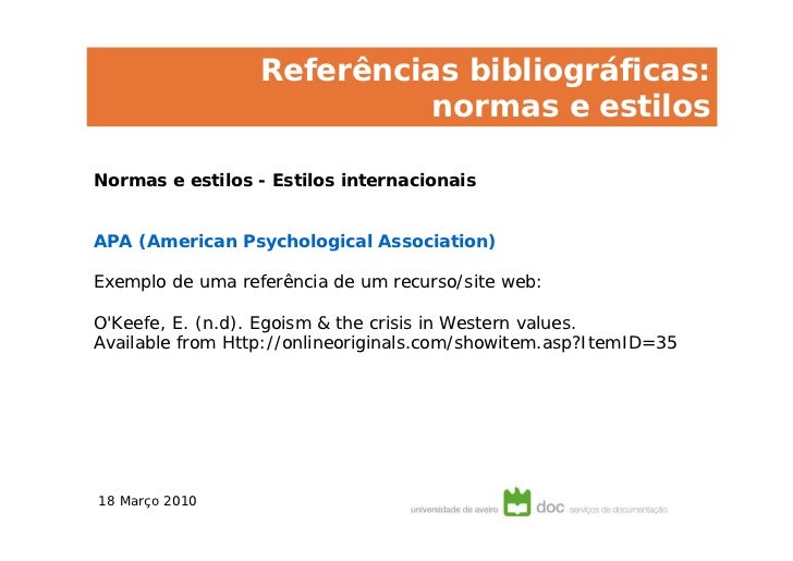 Dados sobre Exemplo De Como Colocar Referencias Bibliograficas.