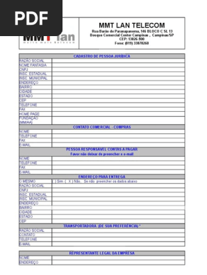 Modelo De Formulario Para Dados Cadastral Pessoa Juridica R
