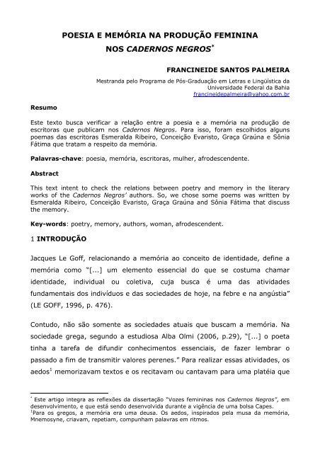 Poesia E Memoria Na Producao Feminina Nos Cadernos Negros