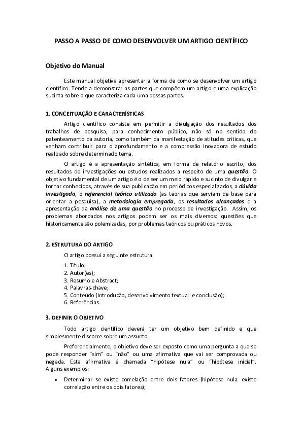 Pdf Passo A Passo De Como Desenvolver Um Artigo Cientifico