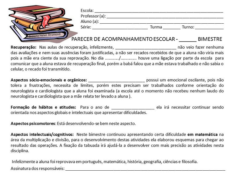 Exemplo De Parecer Descritivo De Aluno Varios Exemplos