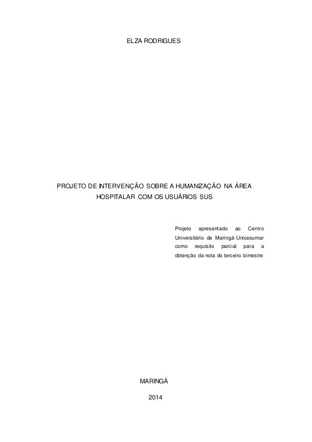 Projeto De Intervencao Sobre A Humanizacao Na Area Hospitalar Com Os