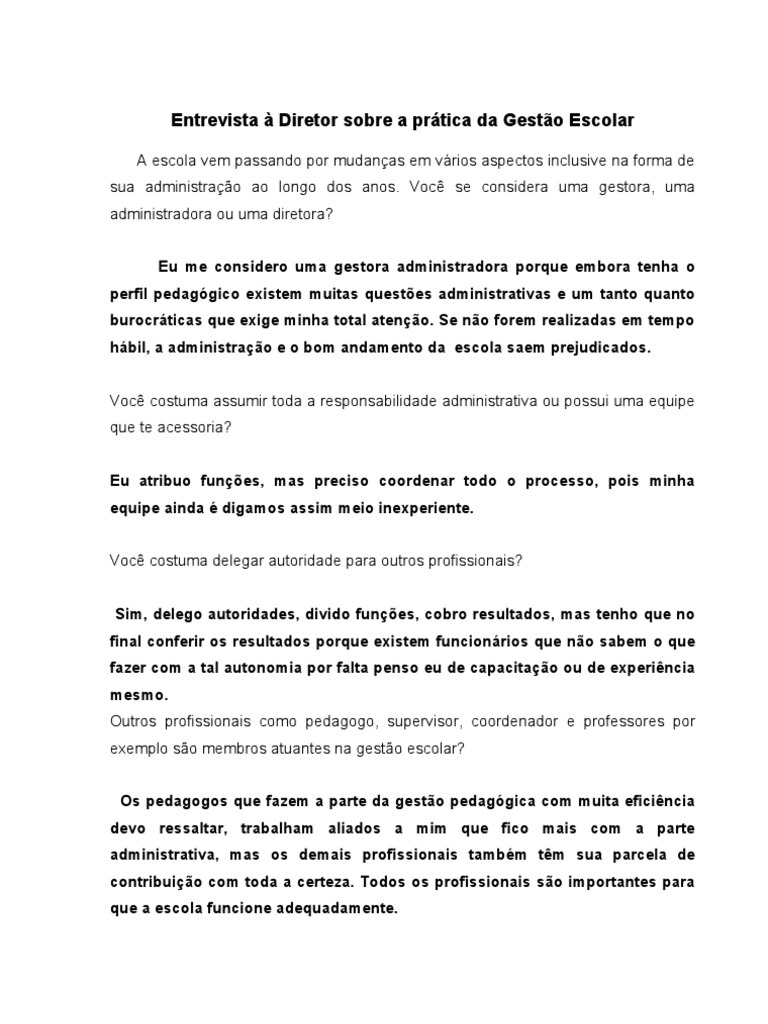 Entrevista A Diretor Sobre A Pratica Da Gestao Escolar