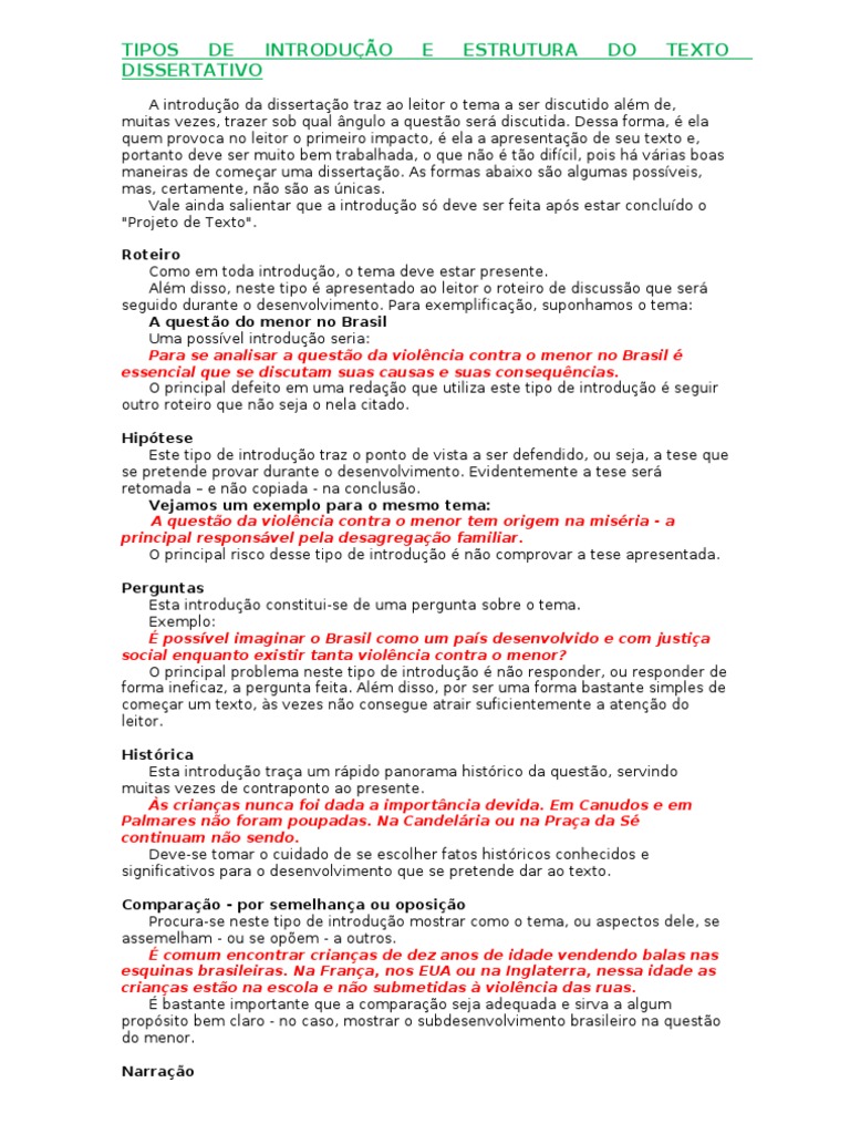Tipos De Introducao E Estrutura Do Texto Dissertativo Brasil