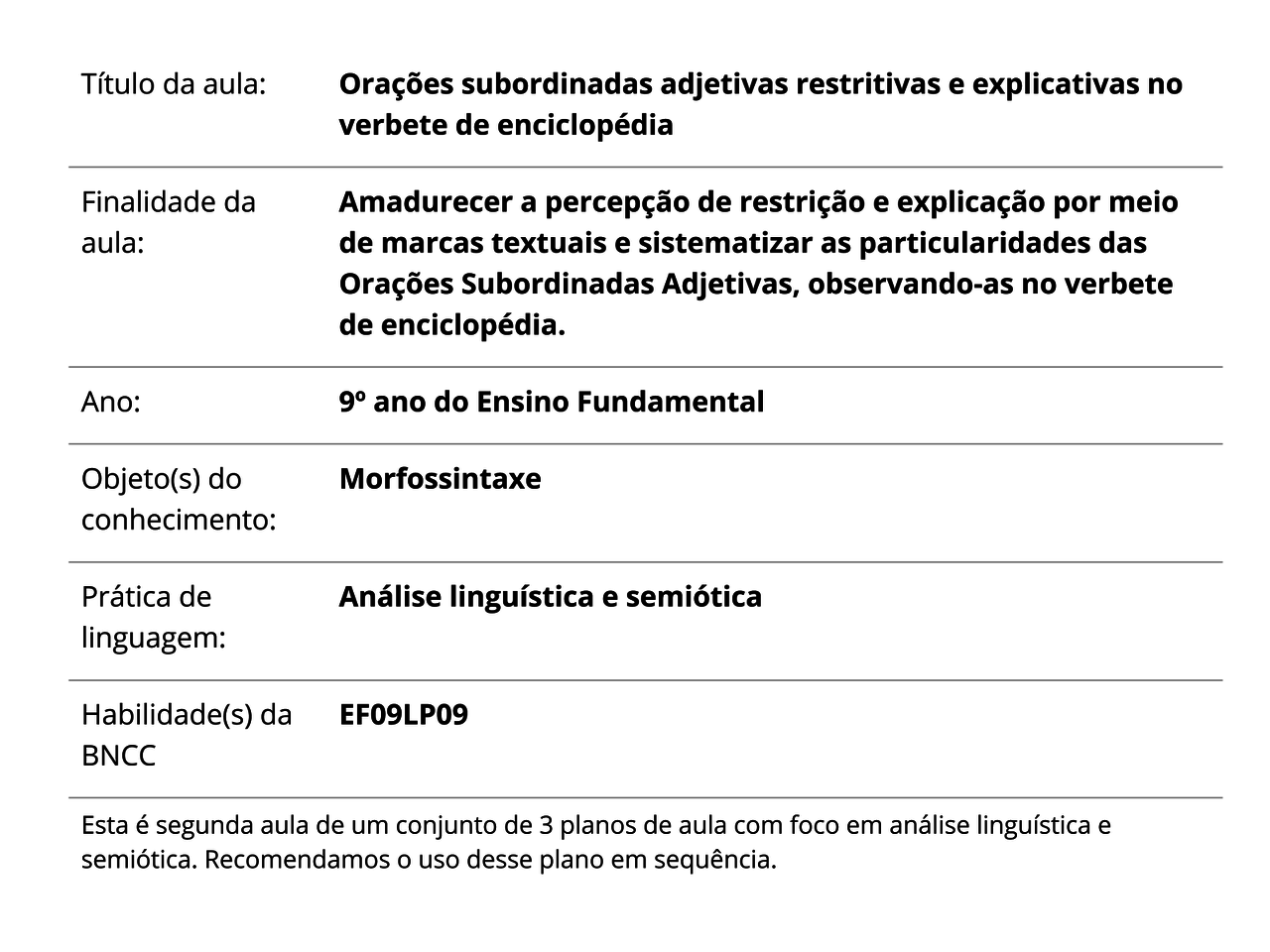Plano De Aula 9º Ano Lingua Portuguesa Oracoes Subordinadas