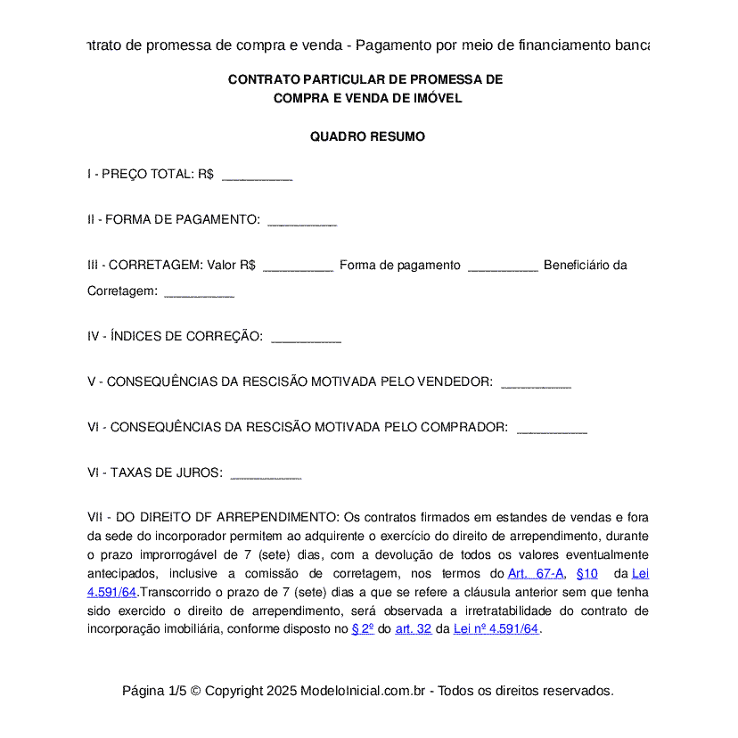 Contrato De Compra E Venda Imovel Na Planta Financiado Pdf