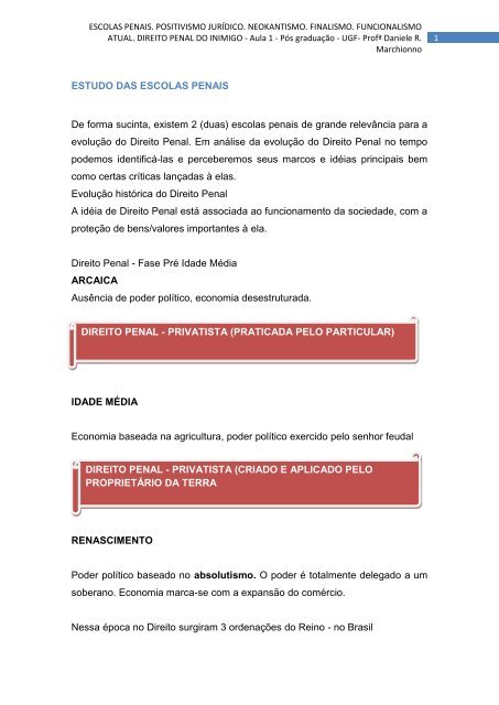 Escolas Penais Positivismo Juridico Neokantismo Finalismo