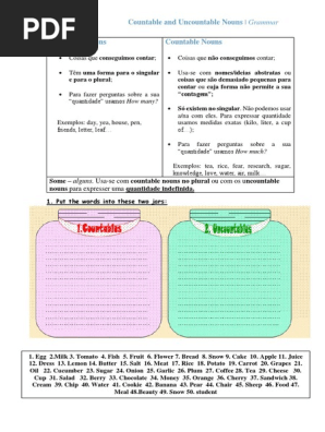Gramatica Countable And Uncountable Nouns Ingles Na Ponta Da Lingua
