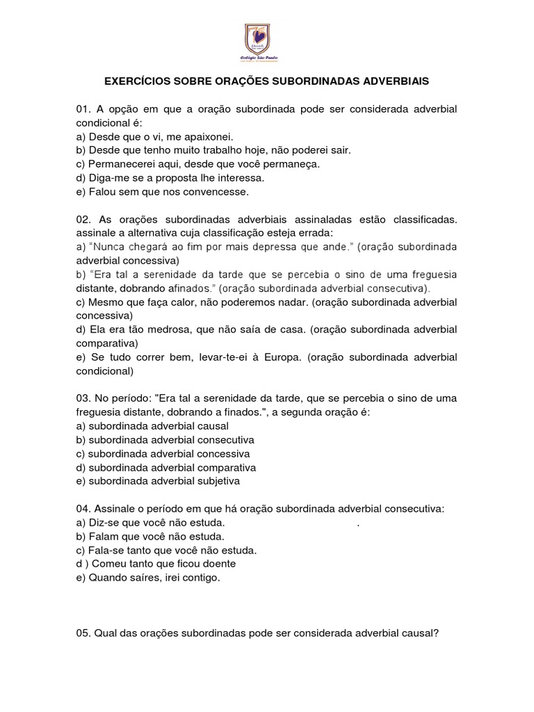 Oracoes Subordinadas Adverbiais Questoes Com Gabarito Exercicios Web