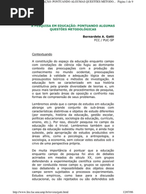 A Pesquisa Em Educacao Pontuando Algumas Questoes Metodologicas Pdf